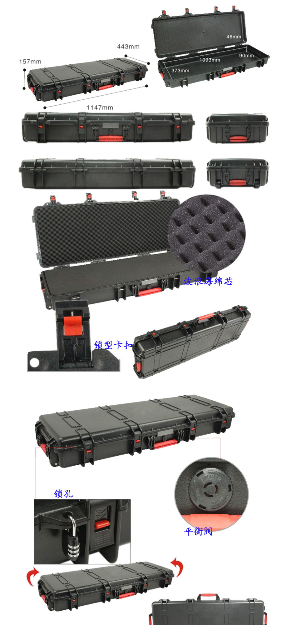 簡要說明:廣泛用于傳媒、公安、消防、軍隊、航空、戶外攝影、野外考察、科學(xué)探測等眾多領(lǐng)域的高端儀器、儀表。具有高強(qiáng)度、高抗壓沖擊、防潮、絕對密封、防塵、防水等特點。產(chǎn)品材質(zhì):ABS原料,箱體采用高抗沖擊的高分子聚合材料一體注塑成型,密封采用扁型彈性發(fā)泡密封橡膠條,確保防水氣密,所有較軸均采用不銹鋼材質(zhì)。